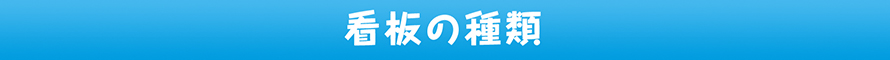 店舗の前に置く看板です。両面タイプや片面タイプ、電飾タイプ、サイズも様々な物があります。
